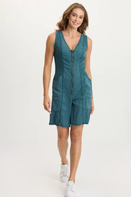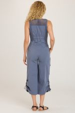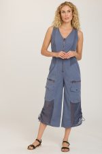Mesh panels and adjustable cord channel at the split side hem grant this wide-leg, cropped jumpsuit special detail. Add in contrasting inserts at the torso for an impeccable fit, zipper pockets on top of flapped snap pockets, and an antique brass zipper, and you??ve got Kimeo??a total showstopper!