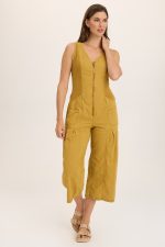 This cotton linen head-turner features contrasting inserts at the bodice for a fit you can count on. Paired with layered pockets at the hips, small box pleats cascade and add soft volume to the leg. A v-neckline descends into an antique brass zipper that makes Macgowan easy to put on and take off.