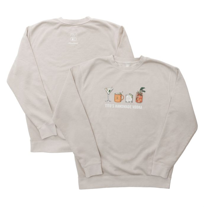 The Tito’s classics look just as good on a bar top as they do on this crewneck.