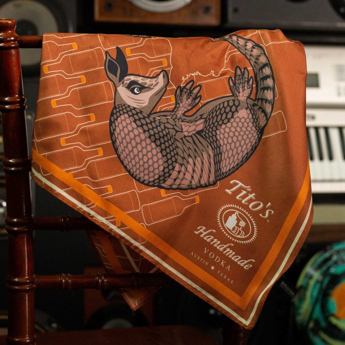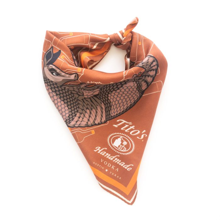 The ultimate splash of flair for any fashion-forward Tito’s fan. The Tito’s Southwest Silk Scarf matches our copper caps, and nods to our Texas roots with the state’s well-known critter, the armadillo. A true statement piece that’s stylish and silky smooth, just like our vodka.